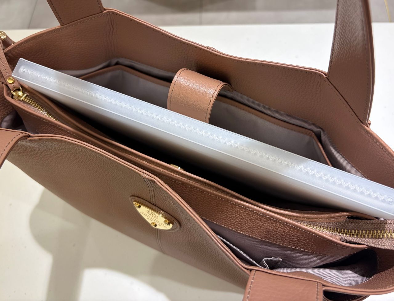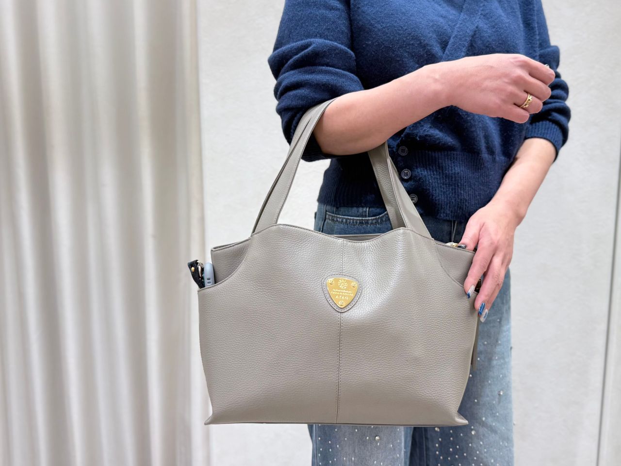 そしてA4 やPCを入れないときは、ハンドル持ちでくったりとしたコンパクトなシルエットで持てるのも魅力です。