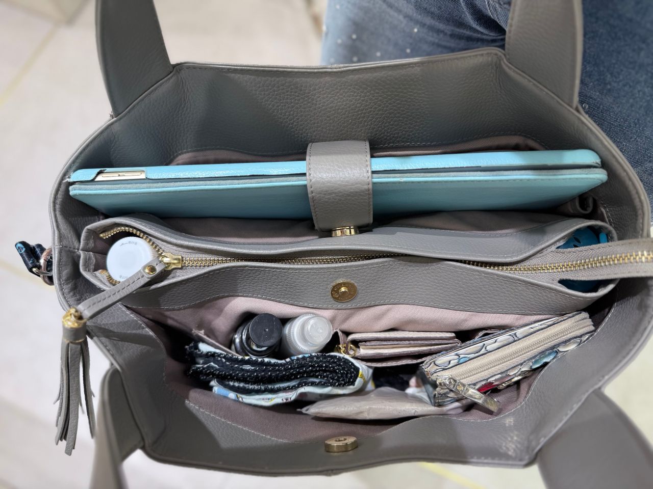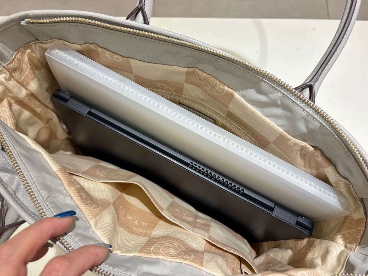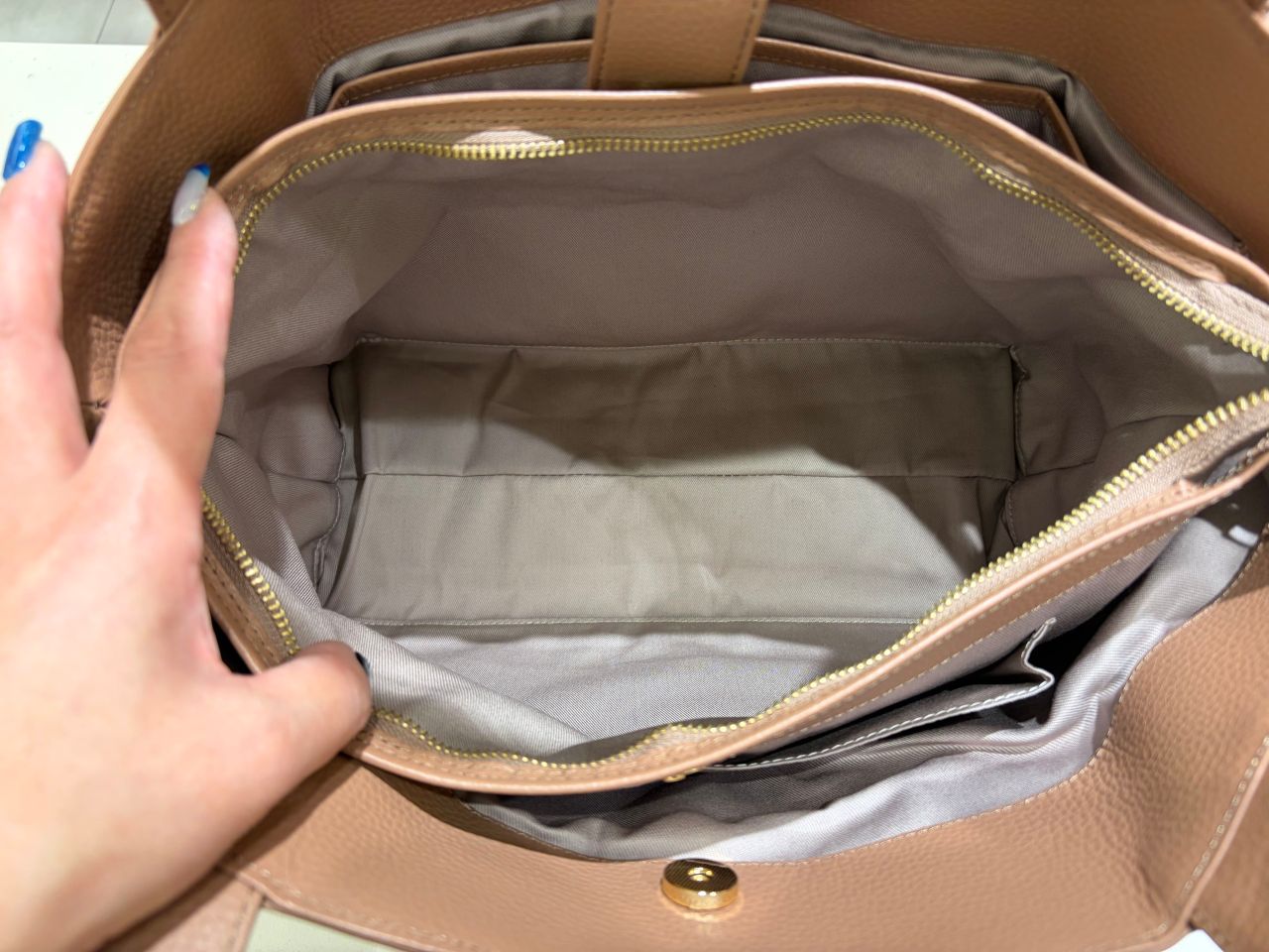 仕切りがしっかりあるので、たくさんの書類や大きめのPCはちょっと入れづらいかもしれませんが、いつもバッグを機能的に整理しておきやすいです。