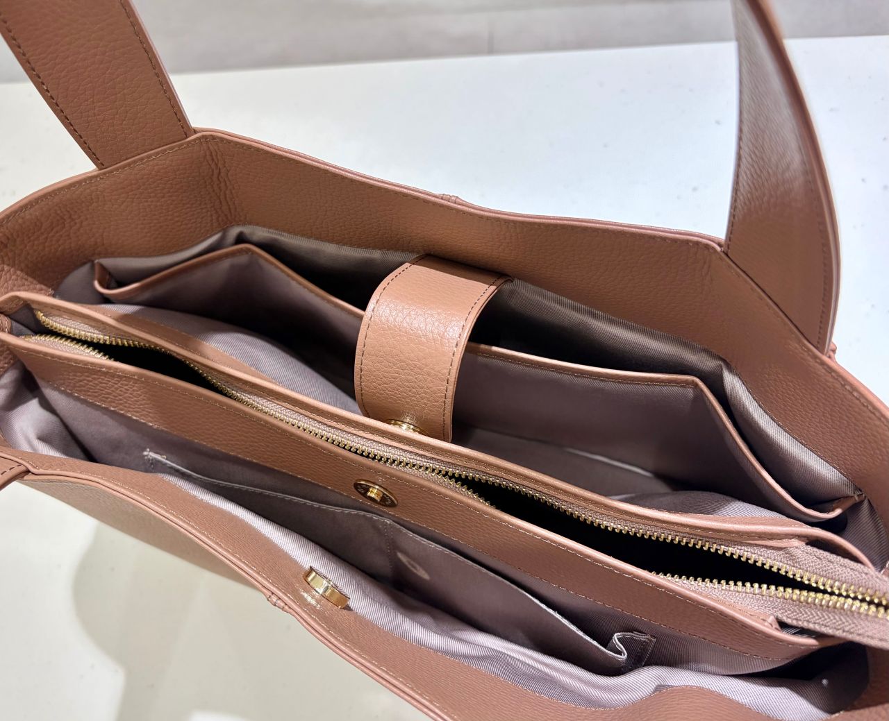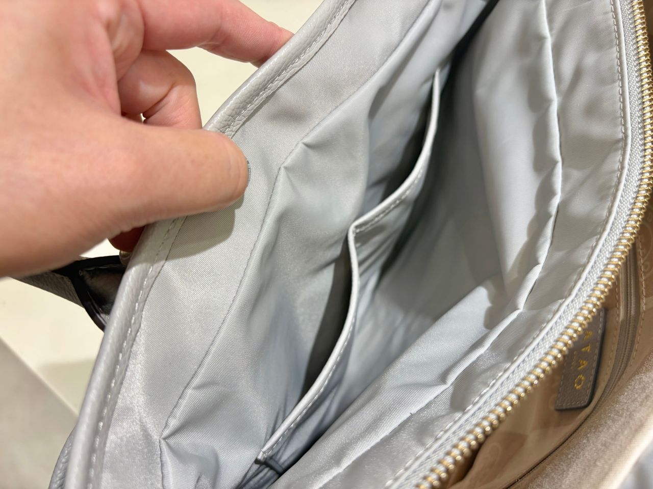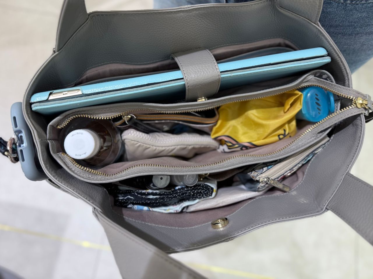 仕切りがしっかりあるので、たくさんの書類や大きめのPCはちょっと入れづらいかもしれませんが、いつもバッグを機能的に整理しておきやすいです。
