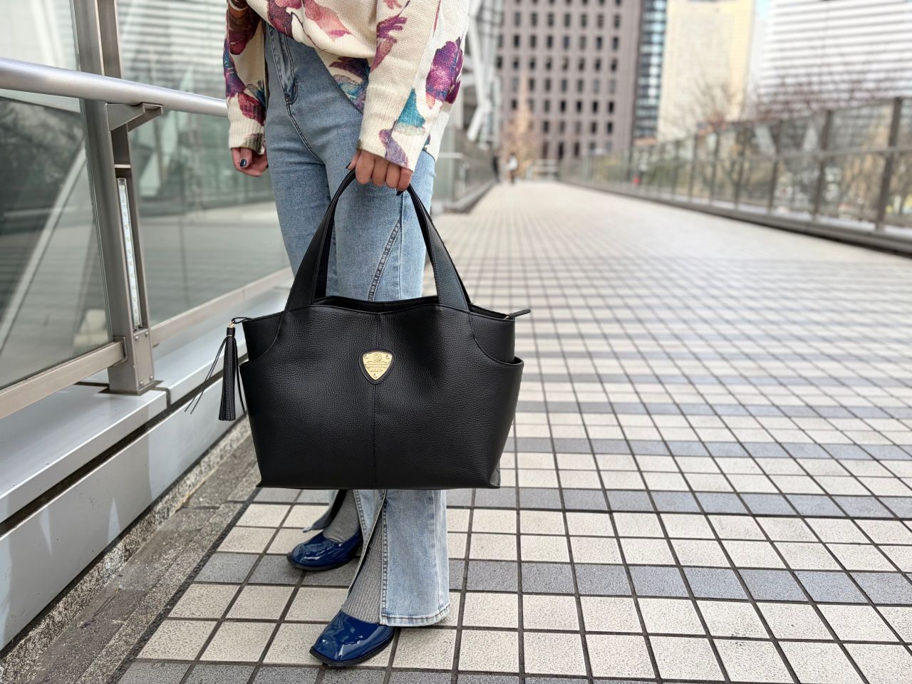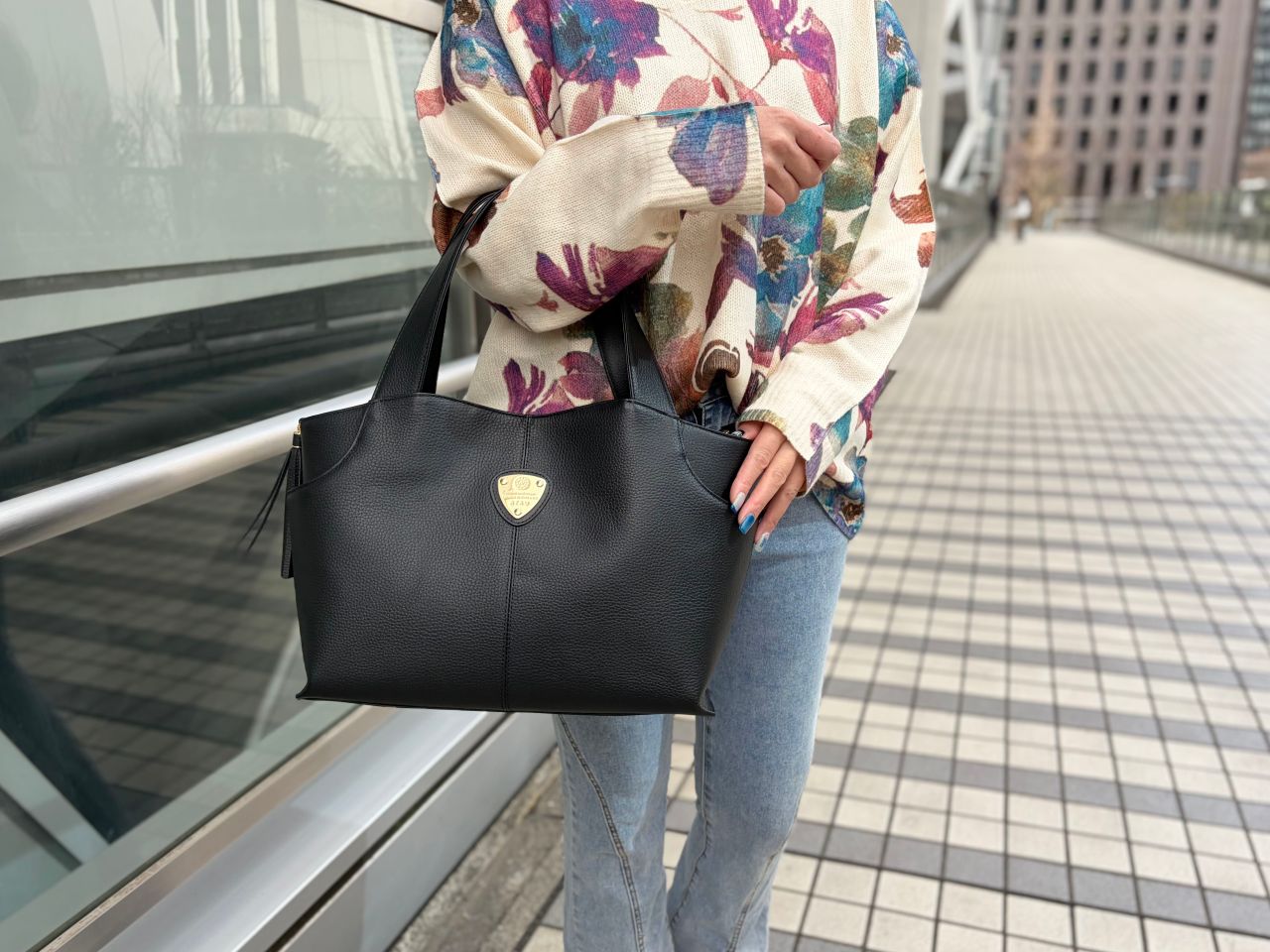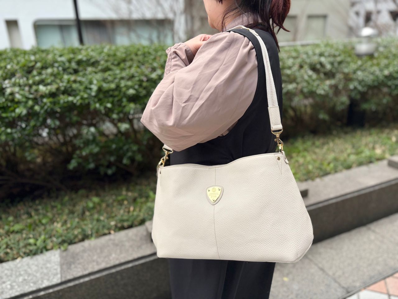 ハンドルも太めでしっかりとした根本から、自然にシェイプしており肩にかけやすいデザインです。