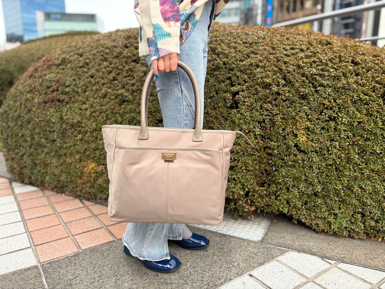 なめらかでハリコシのあるナイロンはカジュアルになりすぎず、ちゃんとした感は損なわずに使えます。