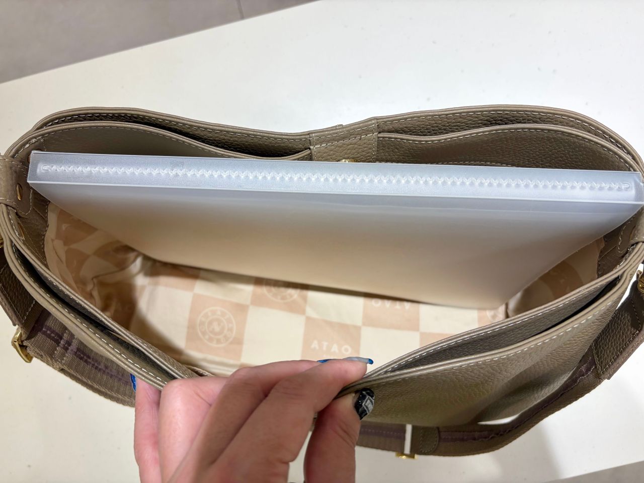 そうすると形が比較的長方形になり、書類やPCが持ちやすくなります。