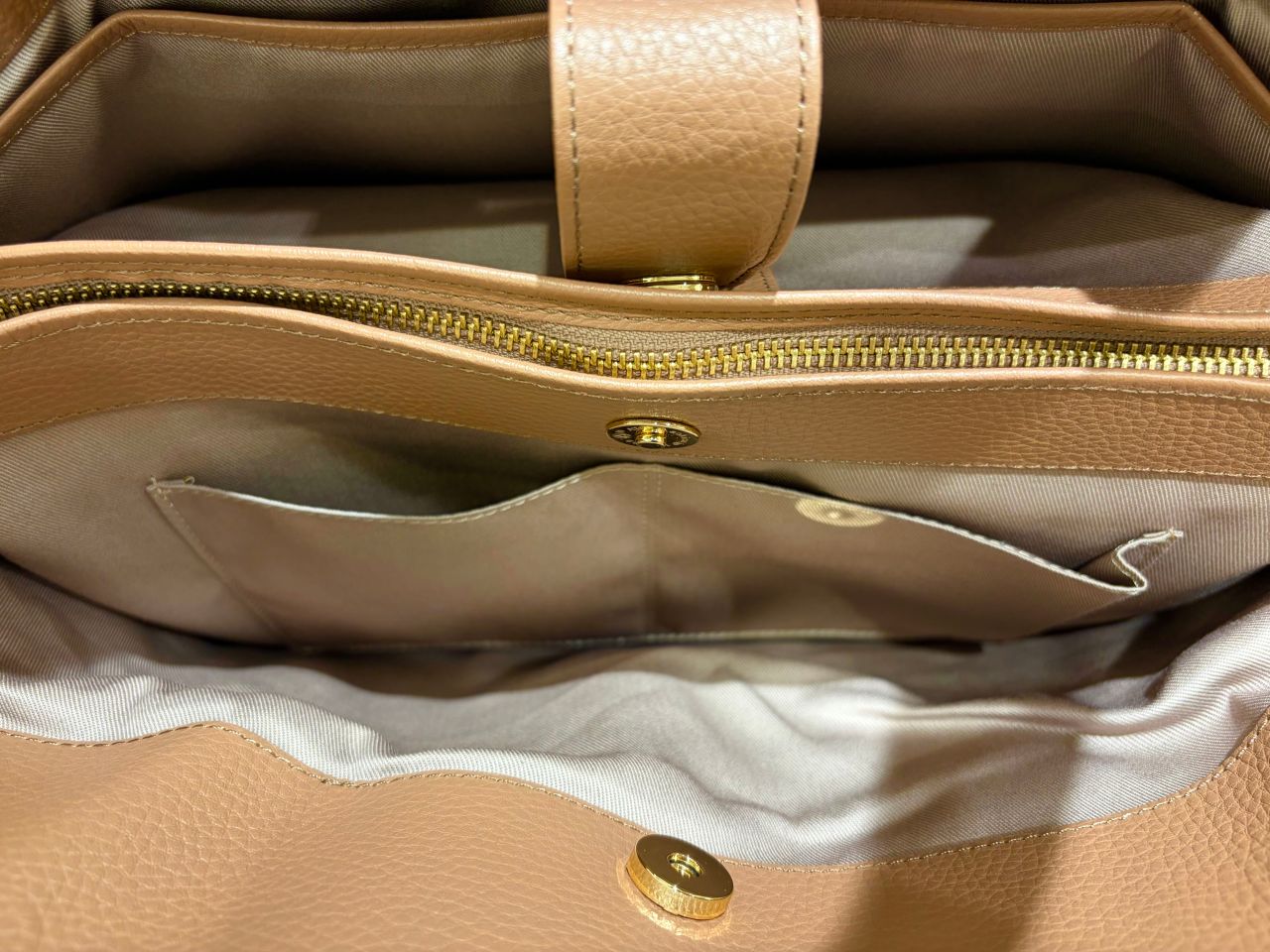 ↑真ん中のメインポケットのファスナーを閉めた状態