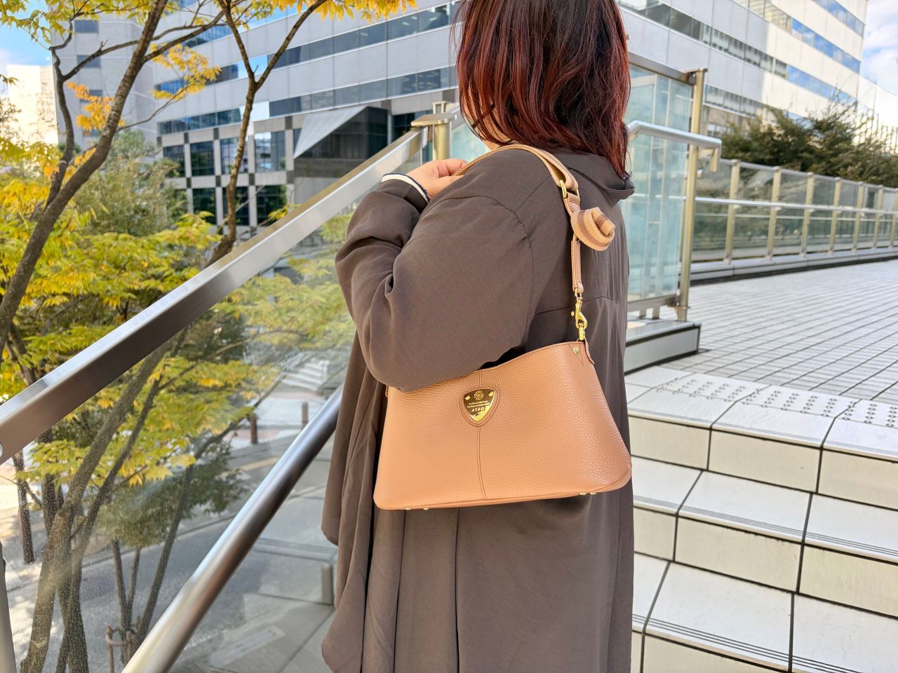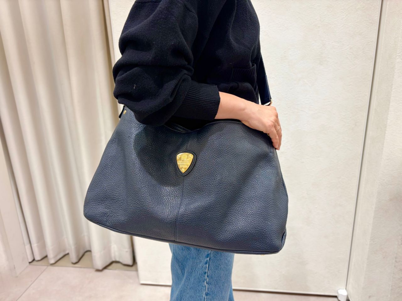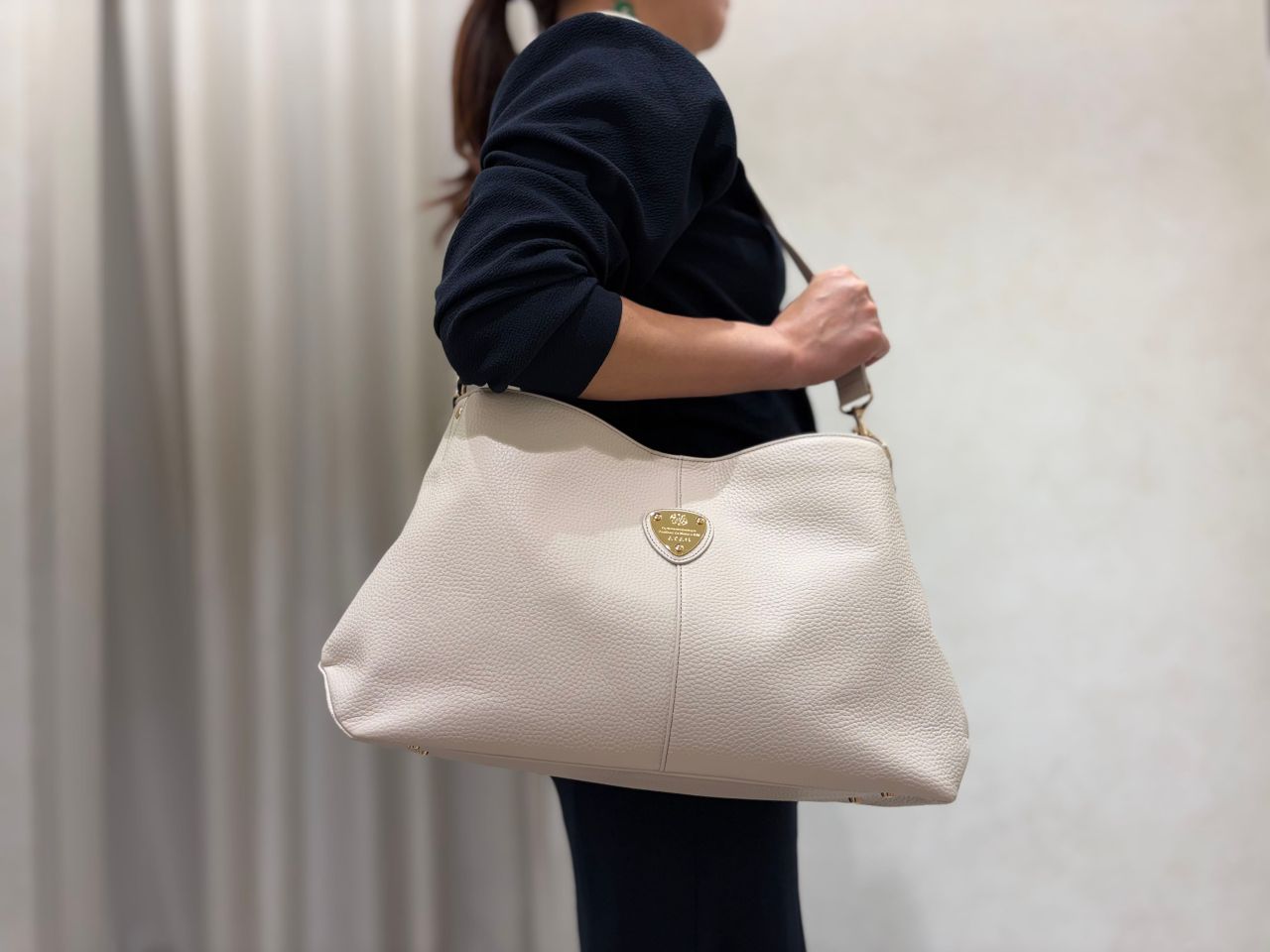 革がなじむとハンドル部分でも肩掛けができますが、ショルダー紐でラフに肩掛けもできるので、行先やコーディネートによって使い分けてみて下さいね。