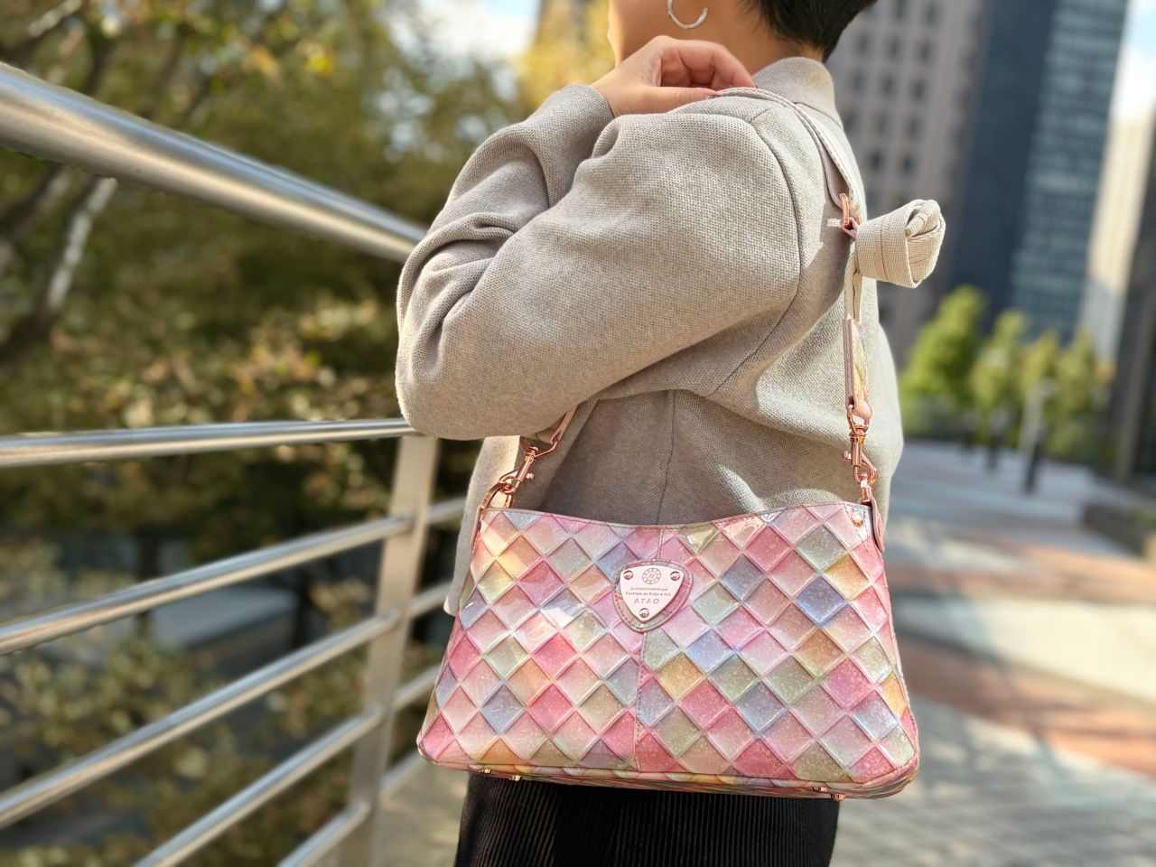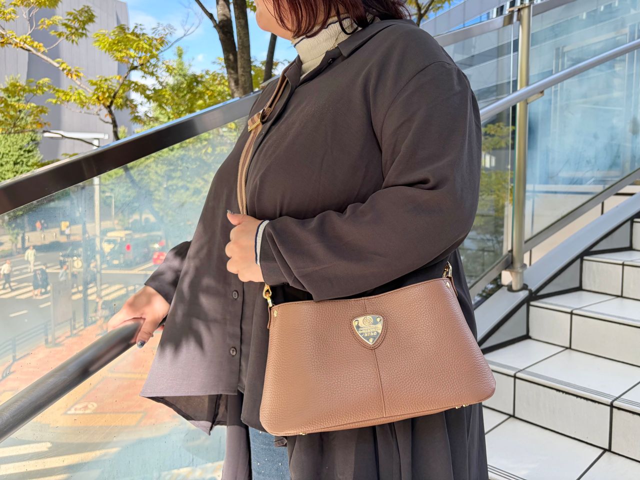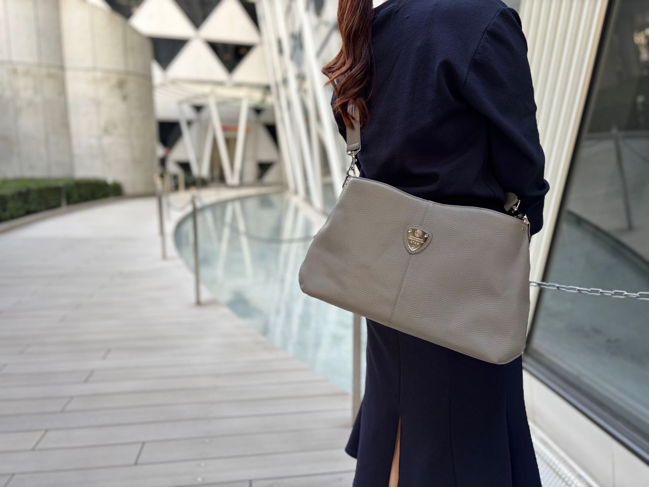 ●elvy+と同じ形のサイズ違いなのでchivy+も、手持ち、肩かけ、斜めがけの3WAYで使える!