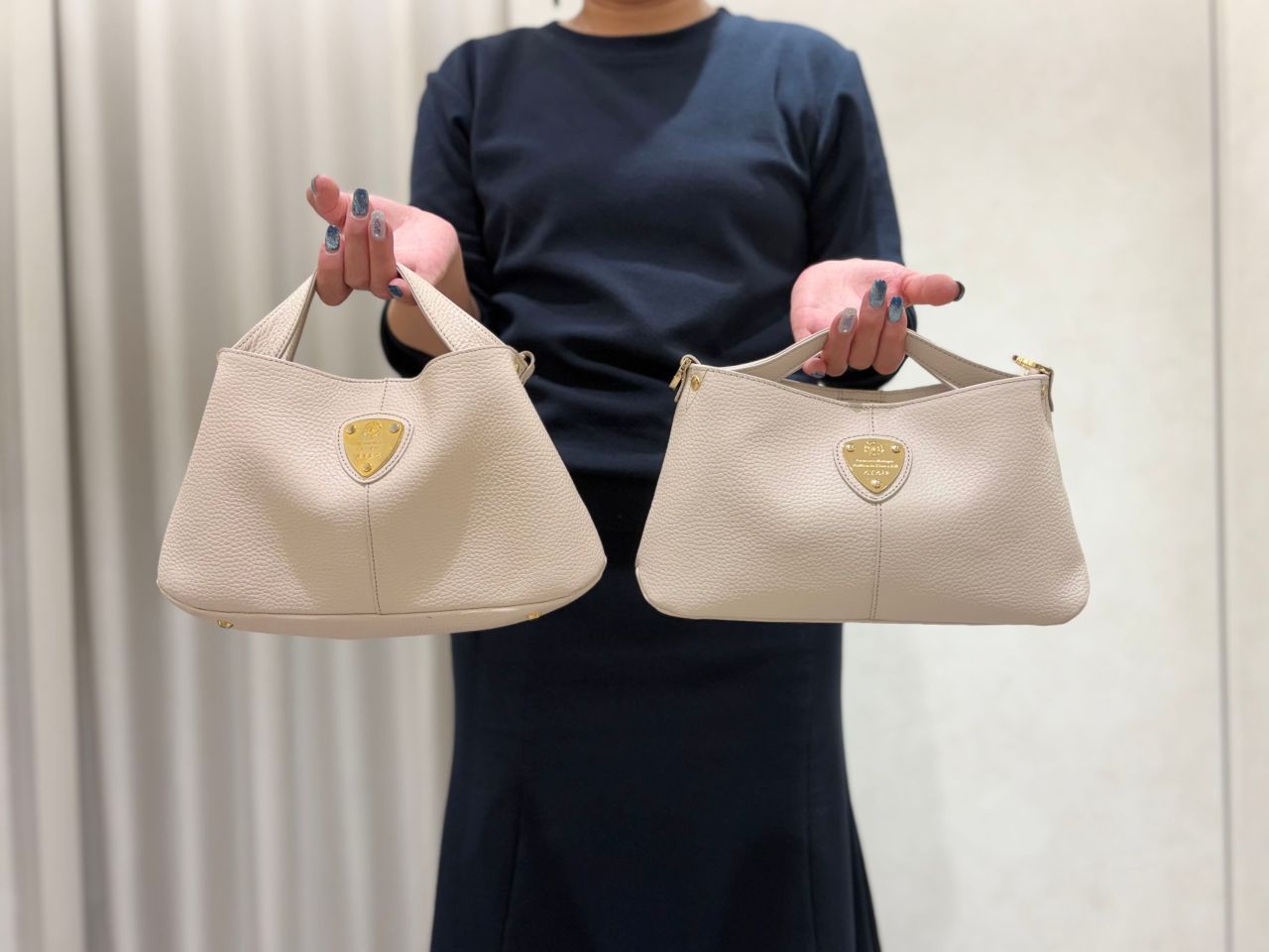 ●ミニバッグサイズながら長財布もしっかり入って、2個持ちもできる大きさ。