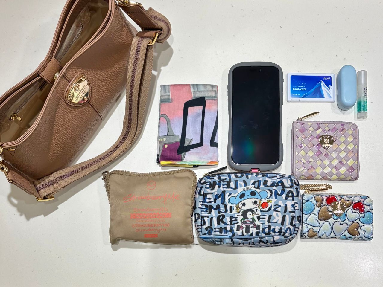 ↑ハンカチ スマホ ミントタブレット イヤホン リップクリーム