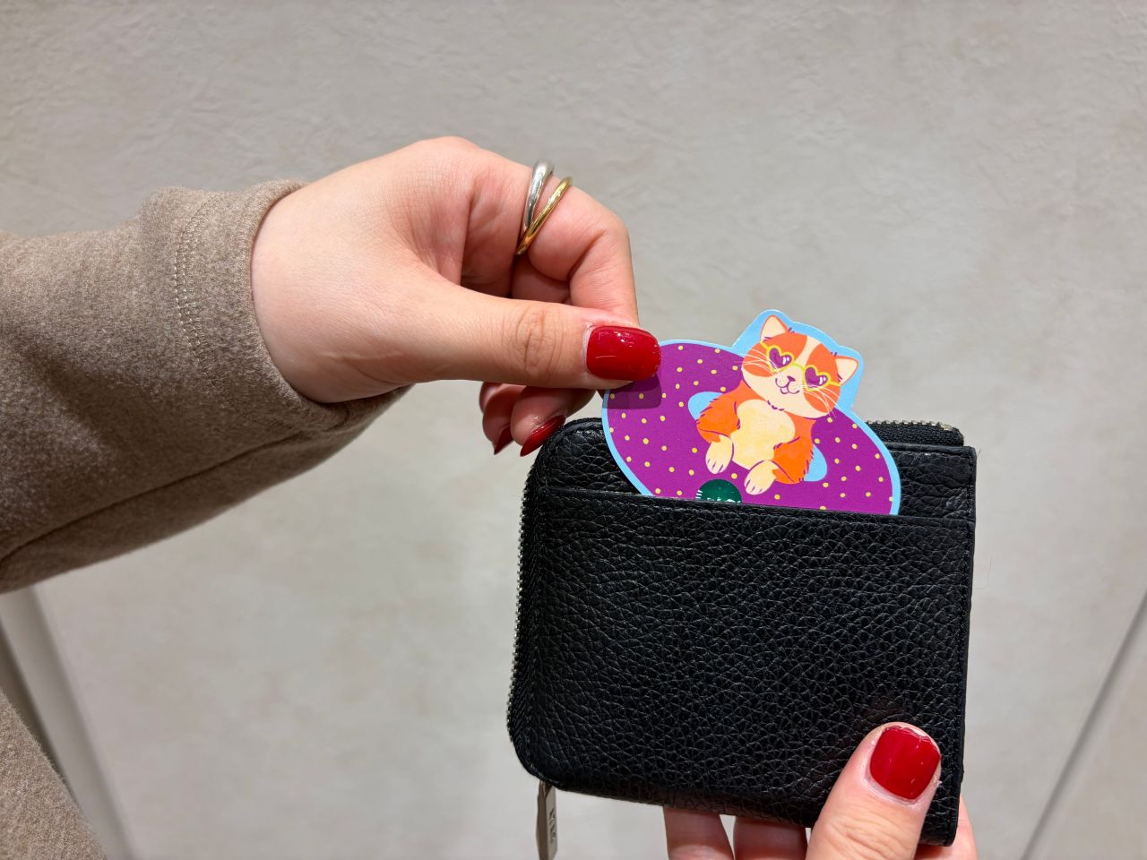 あ、あといつも後ろのポケットにはコーヒーショップのプリペイドカードを入れています!」