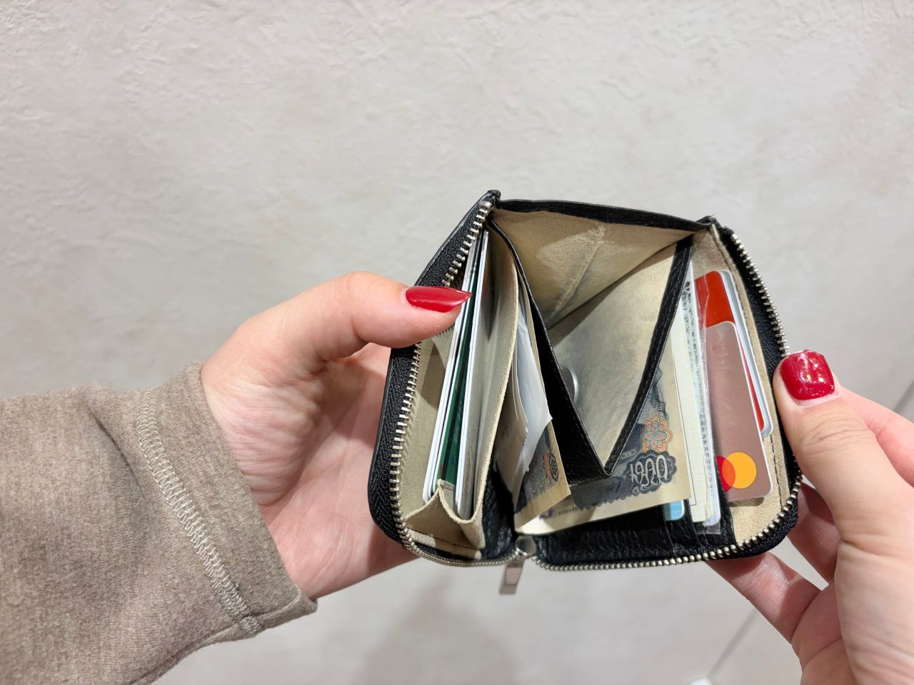 U字に入れたお札の左横にはレシートも入れていますね。
