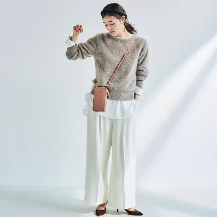 オシャレも軽量も両方叶う、スウェード調のとろみ素材で仕立てたセカンドバッグ