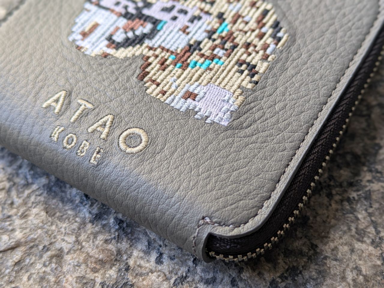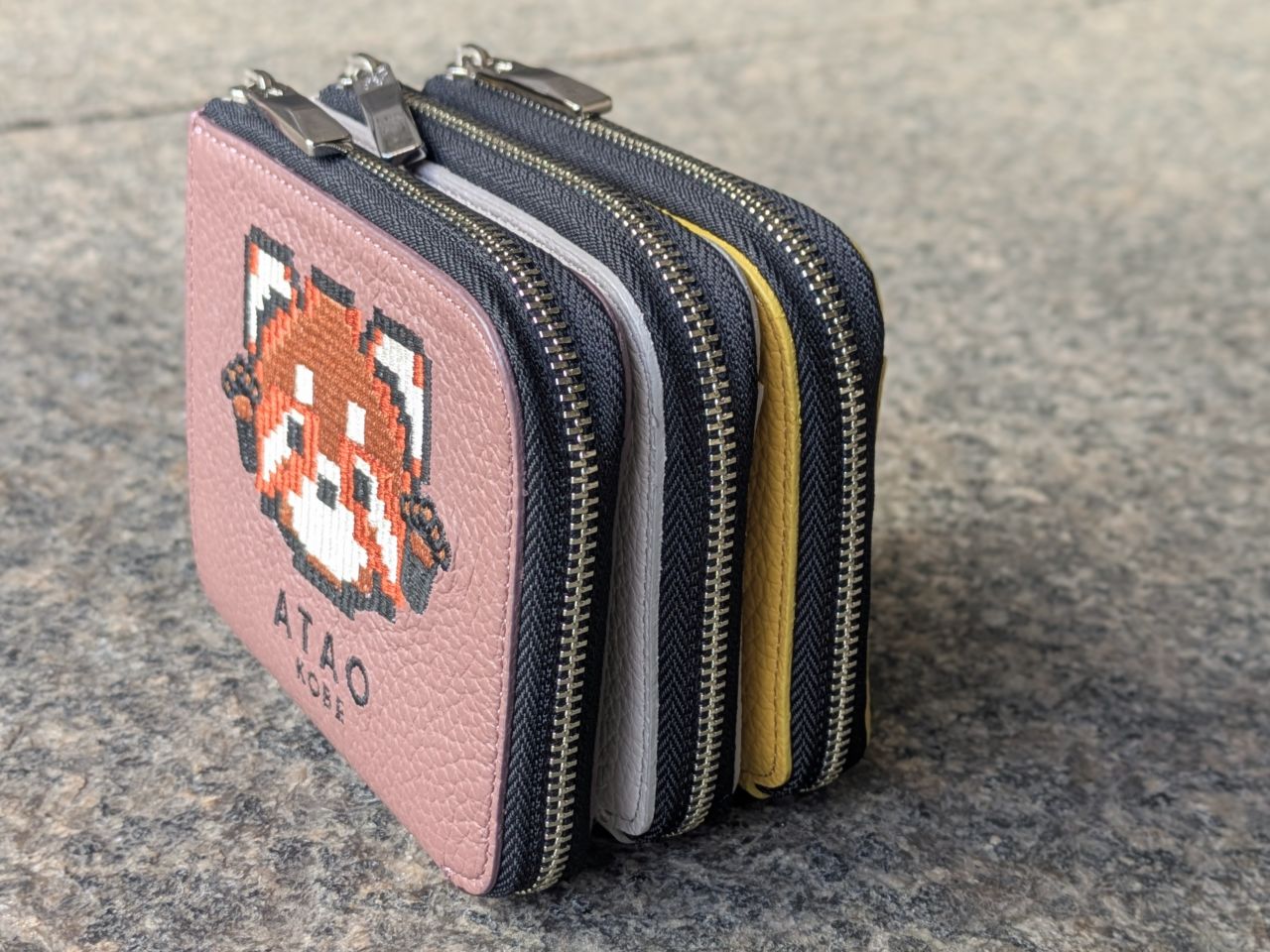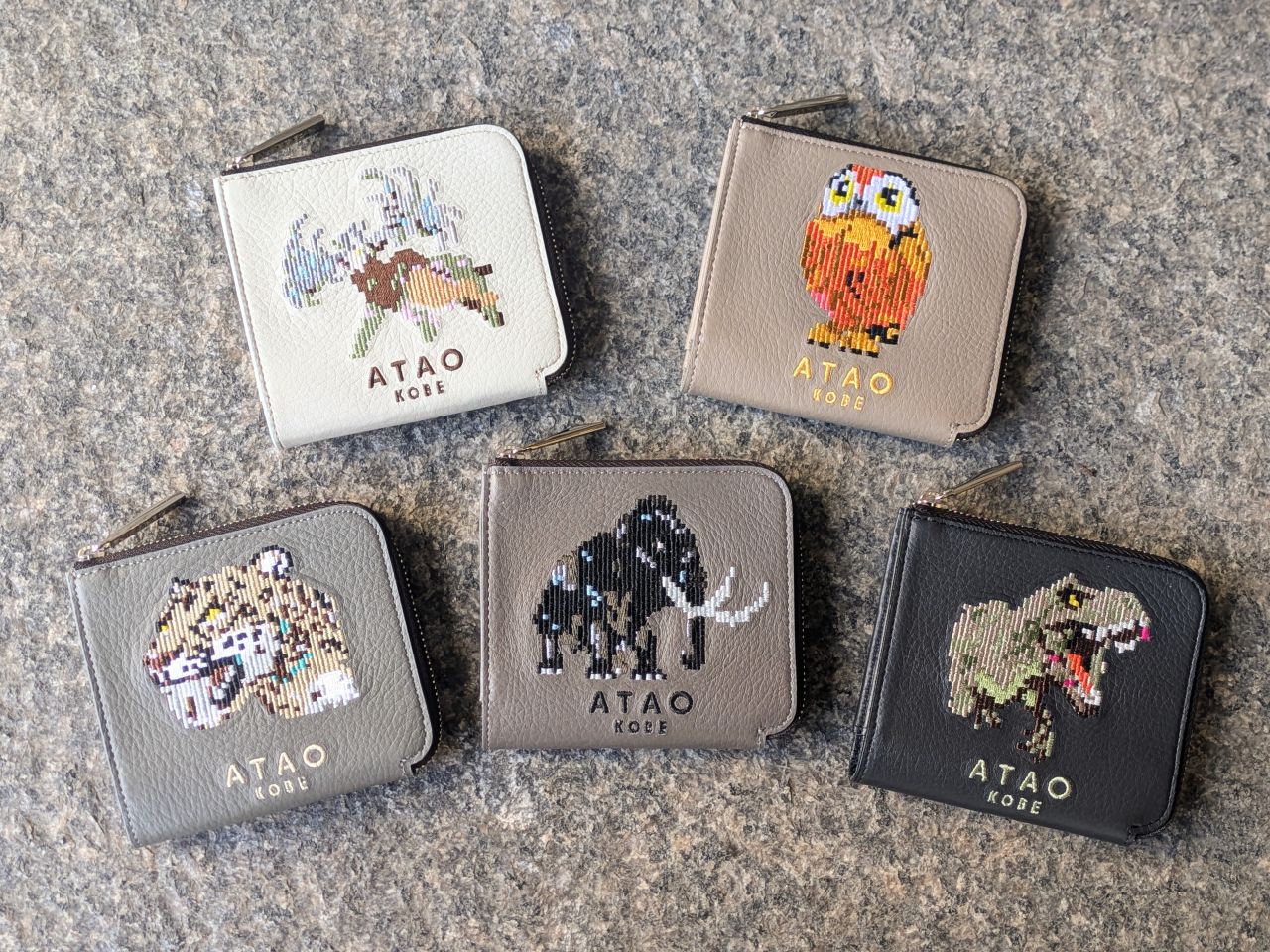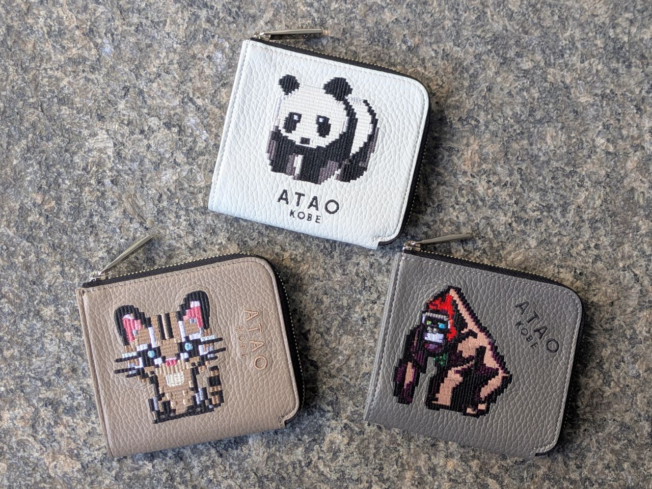使うごとに光沢が増す撥水レザーにさまざまな動物のピクセルアートの刺繍を施した、かわいさと高級感を両立したデザイン