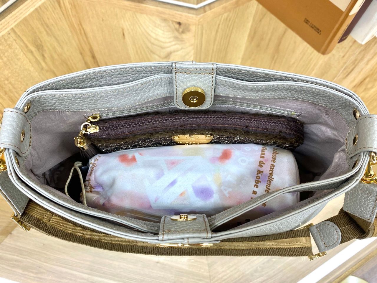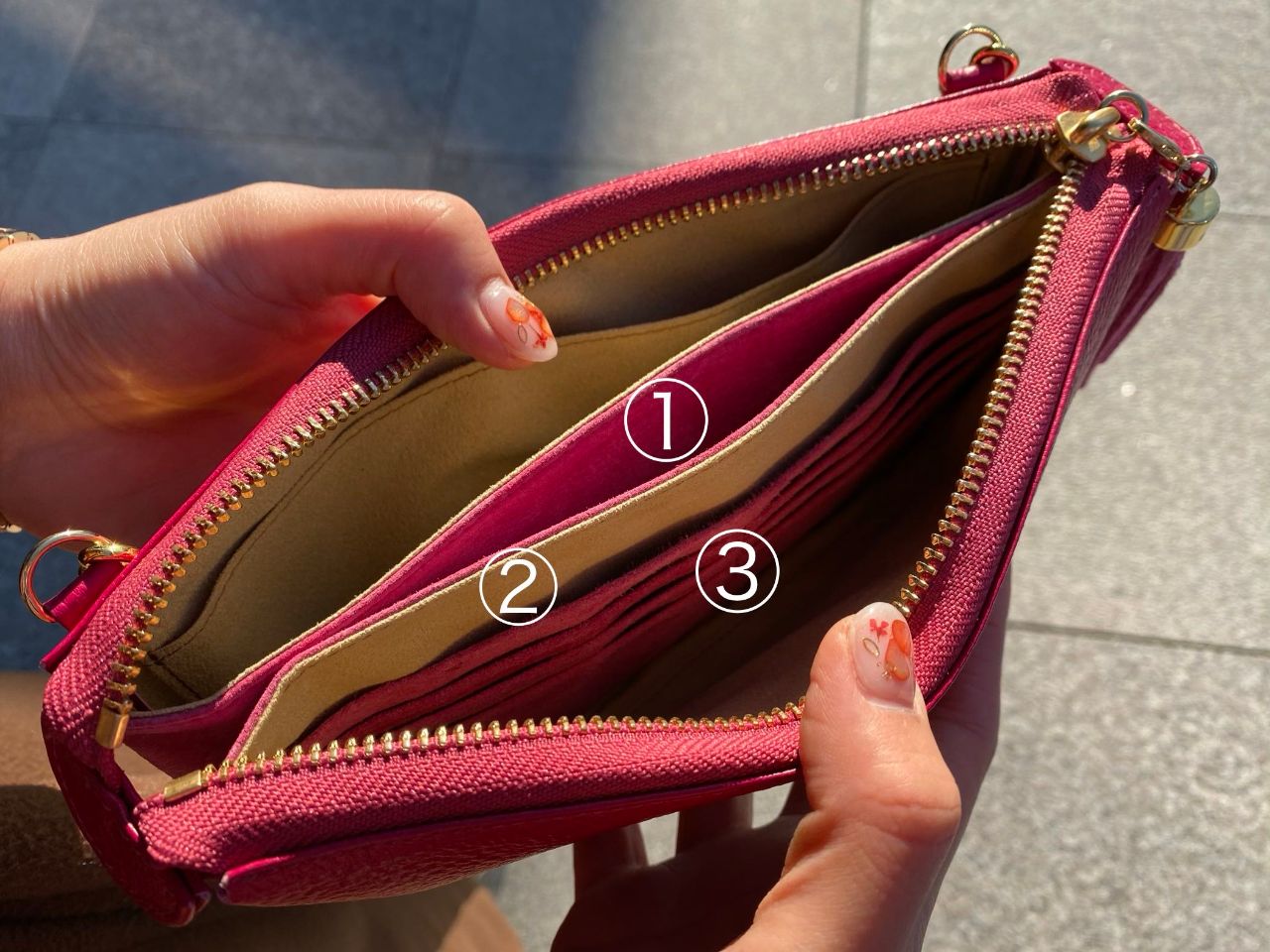 と仕切りがあり、直接お金を入れるタイプのポシェットなんです