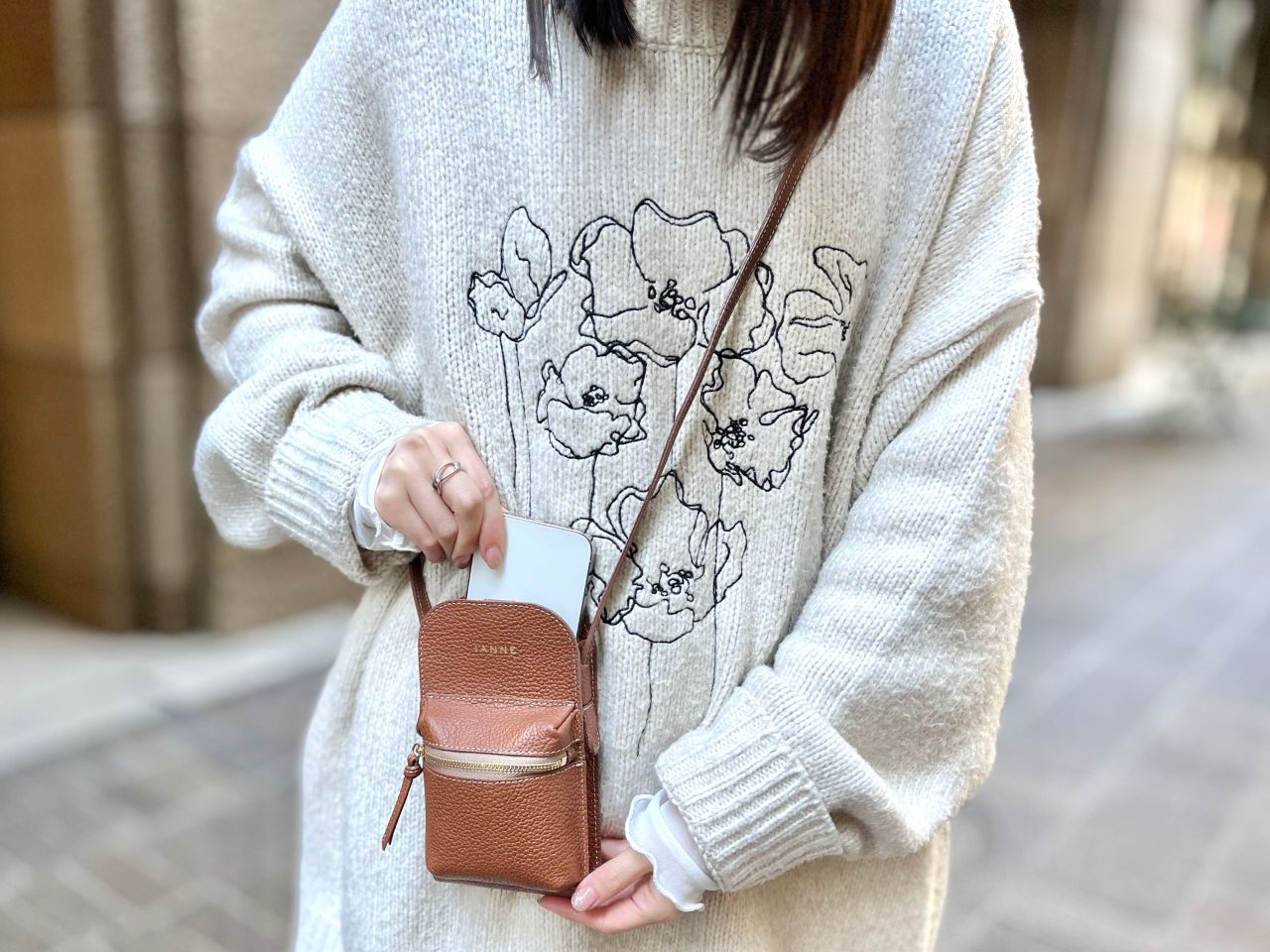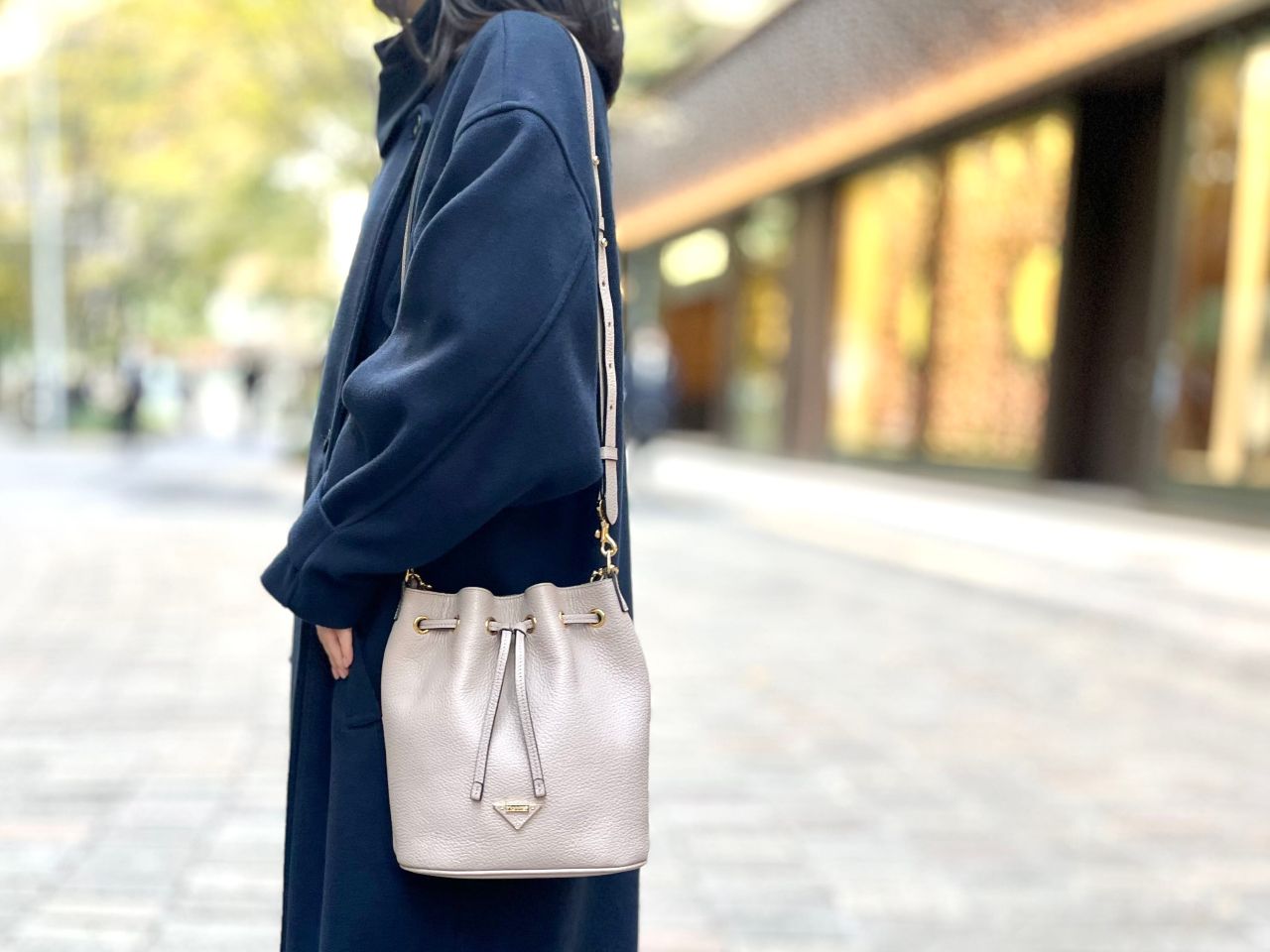 冬はコートの上から短めに斜め掛けするとアクセントになってくれます♪