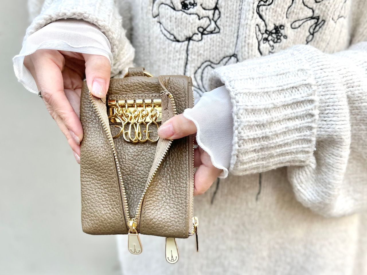 キーケース部分とカード収納部分に分かれていて、ミニ財布やカードケースとしてもお使いいただける頼もしいアイテム。