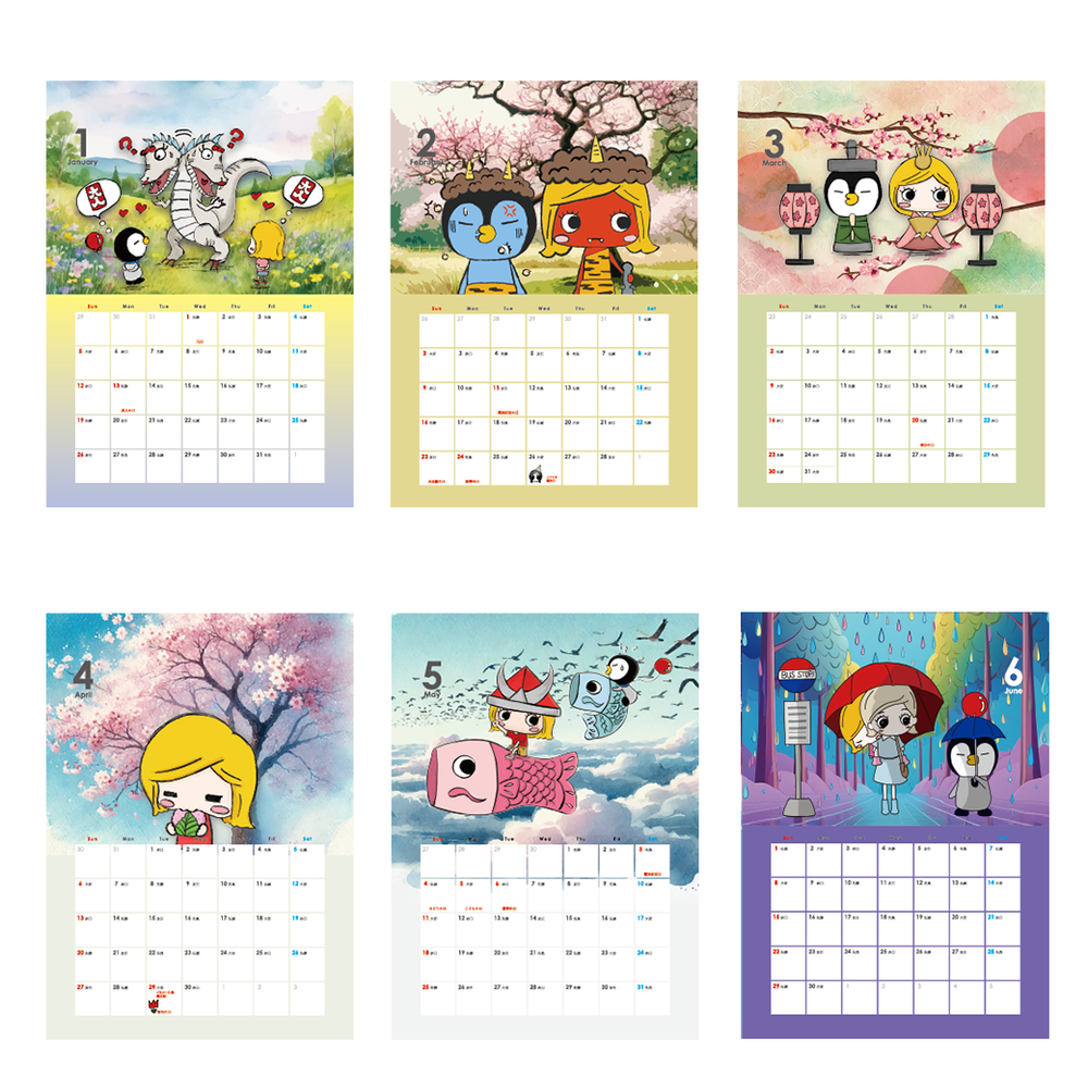 イラストは一緒ですがサイズの都合上、「壁掛けカレンダー」とは若干違う仕様の部分があるので「卓上カレンダー」のデザインも大公開!