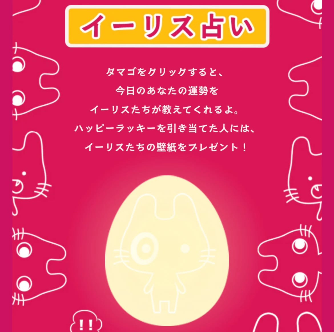 21日(土)から店頭にてククレの森サイト内にあるイーリス占いをしていただいた方に、占いで引き当てたイーリスの種類のステッカーをプレゼント☆占いは1日1回までとなっているので、ご来店前に占いをしないようご注意ください。スクリーンショットは無効となります。イーリス占いはこちら>>【CLICK】