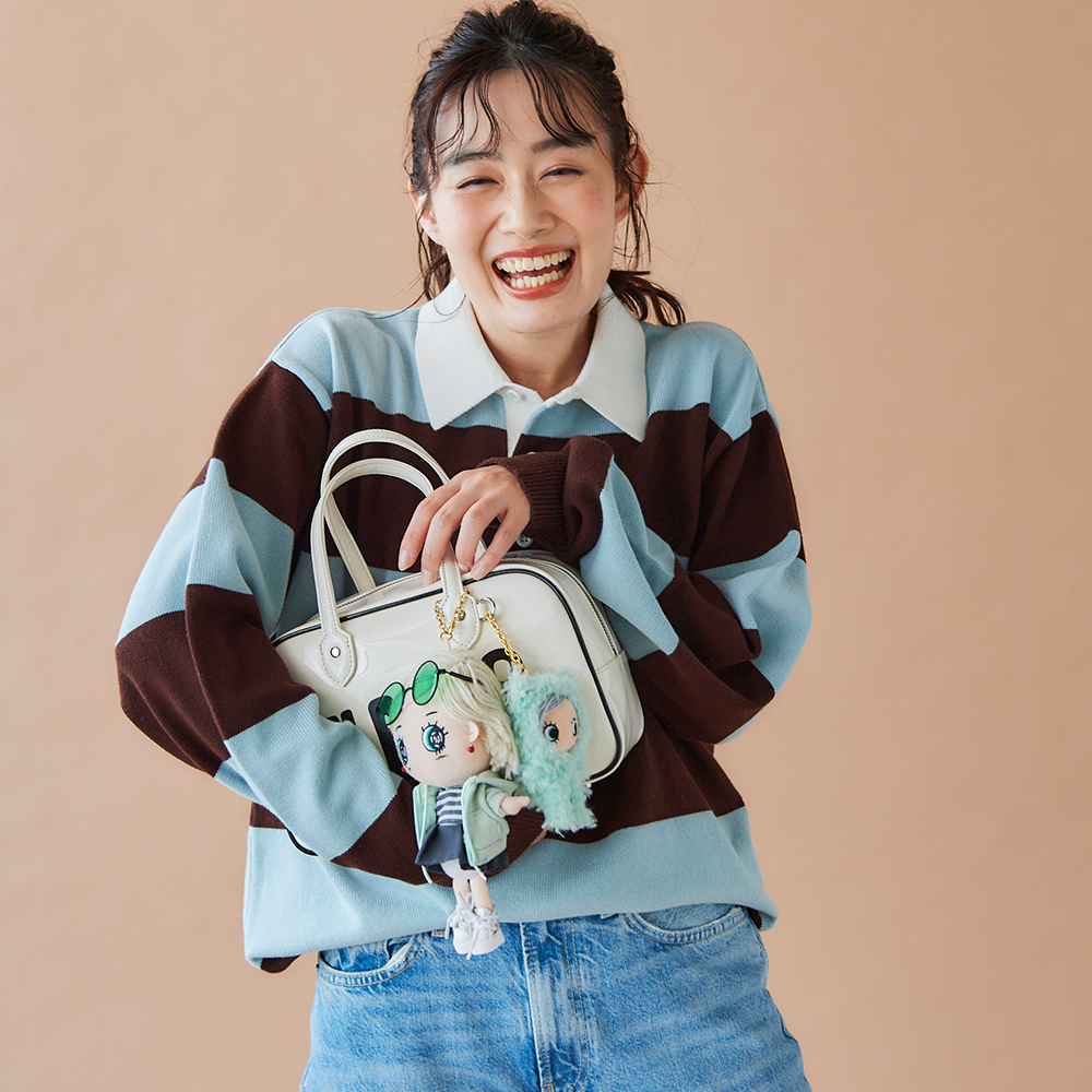 落ち着いたカラーとシンプルなデザインなのでドールも映えます!バッグに揺れるドールチャームが可愛い♡