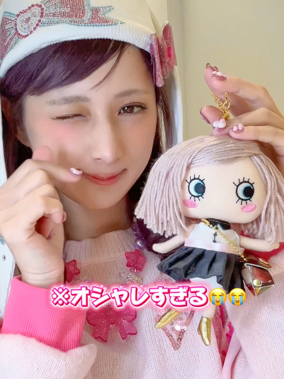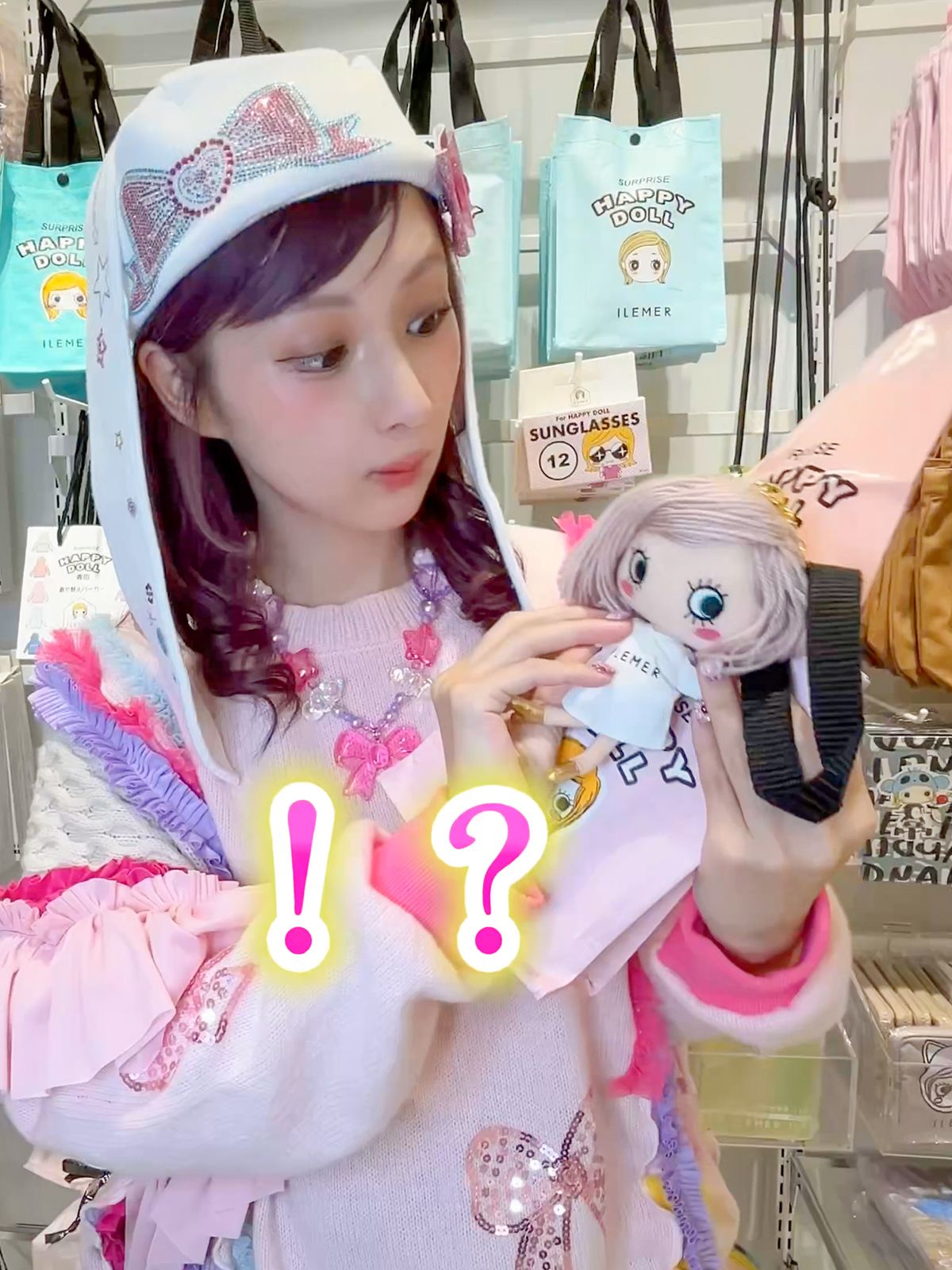 リール動画では、しなこちゃんがイルメールで人気のバッグチャーム「サプライズ・ハッピードール」を神引きしたシーンも入っています♡