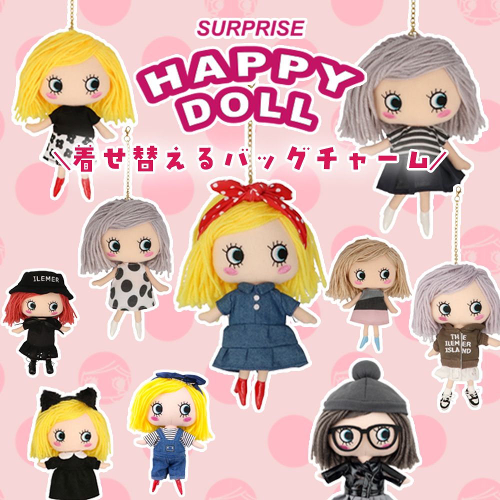 HAPPYDOLL(ハッピードール)は着せ替えができるバッグチャーム。髪色が異なるドールがひとつ入っていて開けるまで分からないサプライズチャームです。着せ替えはもちろん、ヘアアレンジもでき、自分仕様にアレンジできちゃいます♡